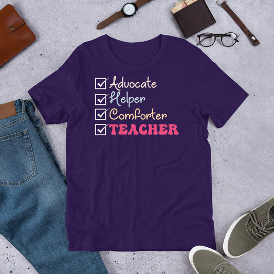 Math, ELA, Science, or History themed shirts — all taught with heart.
